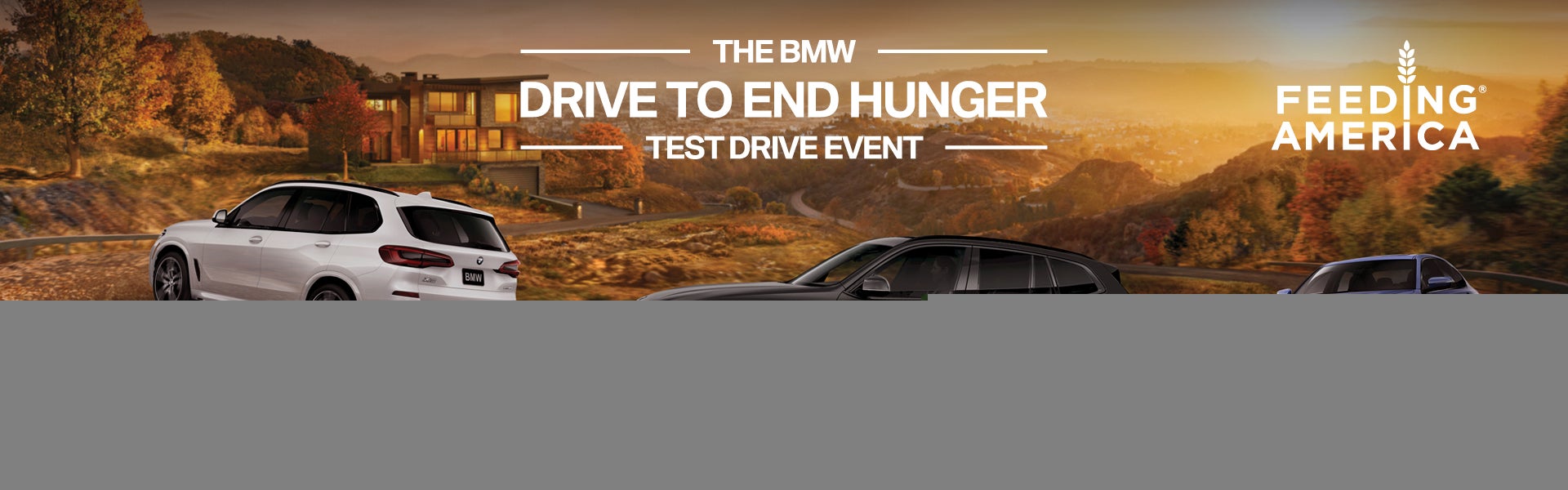 Disclaimer: $1,000 offer valid on eligible vehicles test-driven November 12, 2019 through November 18, 2019 and delivered November 12, 2019 through January 31, 2020. Eligible models include most new in-stock MY2019 and MY2020 BMWs. The MY19 & MY20 X7 and 8 Series (all variants), MY19 & MY20 M2 Competition, M5 (all variants), MINI vehicles and BMW Pre-Owned/CPO vehicles do not qualify. This offer cannot be used for vehicles previously ordered or delivered before November 12, 2019 and is only valid on delivery of in-stock vehicles. Offer valid to BMW’s Drive To End Hunger Test Drive Event participants and their family members residing within the same household. Offer valid on final negotiated lease or purchase price and may be combined with other applicable BMW offers that are available at the time of purchase. It may not be used toward tax, title, destination and delivery charges. Only one redemption code per vehicle may be used. Only valid at participating dealers. Please see your participating BMW Center for complete program details.