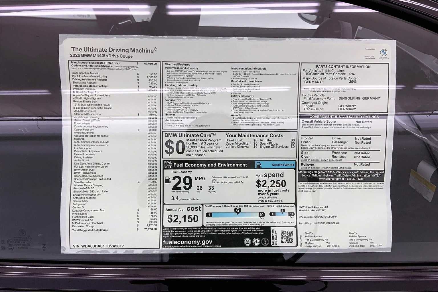 Black Sapphire Metallic exterior and Black w/Blue Stitching interior, Heated Leather Seats, Navigation, Moonroof, Back-Up Camera, Power Liftgate, All Wheel Drive, Turbo Charged, VERNASCA LEATHER UPHOLSTERY, PREMIUM PACKAGE, PARKING ASSISTANCE PACKAGE, DRIVING ASSISTANCE PACKAGE. M440i xDrive trim, Black Sapphire Metallic exterior and Black w/Blue Stitching interior.