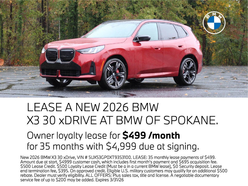 By clicking below, I consent to receive automated marketing calls and text messages from BMW of Spokane. Consent is not a condition of purchase. Msg & data rates may apply. Msg frequency depends on your activity. Unsubscribe at any time by replying STOP. For more information at any time reply HELP. I also agree to the texting providers Privacy Policy