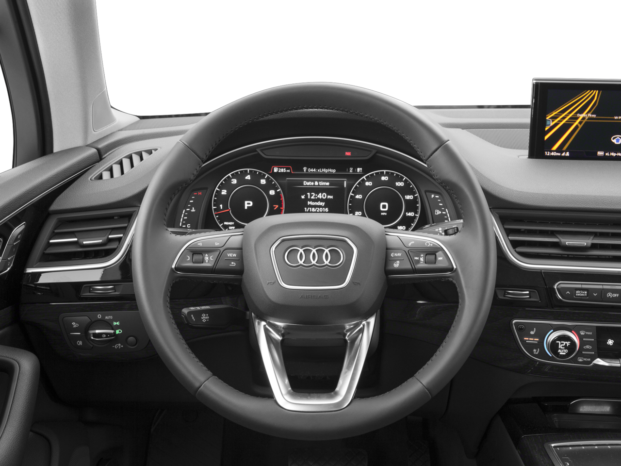 2017 Audi Q7 3.0T Premium Plus quattro quattro 8-Speed Automatic with Tiptronic 3.0L TFSI V6 DOHC 10 Speakers, 3.204 Axle Ratio, 3rd row seats: bench, 4-Wheel Disc Brakes, ABS brakes, Air Conditioning, Alloy wheels, AM/FM radio: SiriusXM, Auto-dimming Rear-View mirror, Automatic temperature control, Brake assist, Bumpers: body-color, CD player, Compass, Delay-off headlights, Driver door bin, Driver vanity mirror, Drivers Seat Mounted Armrest, Dual front impact airbags, Dual front side impact airbags, Electronic Stability Control, Exterior Parking Camera Rear, Four wheel independent suspension, Front anti-roll bar, Front Bucket Seats, Front dual zone A/C, Front fog lights, Front reading lights, Fully automatic headlights, Garage door transmitter: HomeLink, Heated door mirrors, Heated Front Bucket Seats, Heated front seats, High intensity discharge headlights: Xenon plus, Illuminated entry, Leather Seating Surfaces, Leather Shift Knob, Leather steering wheel, Low tire pressure warning, Memory seat, Occupant sensing airbag, Outside temperature display, Overhead airbag, Panic alarm, Passenger door bin, Passenger seat mounted armrest, Passenger vanity mirror, Power door mirrors, Power driver seat, Power Liftgate, Power moonroof, Power passenger seat, Power steering, Power windows, Radio data system, Radio: MMI Radio Plus w/Audi Sound System, Rain sensing wipers, Rear air conditioning, Rear anti-roll bar, Rear fog lights, Rear reading lights, Rear seat center armrest, Rear window defroster, Rear window wiper, Remote keyless entry, Roof rack: rails only, Security system, Speed control, Speed-sensing steering, Split folding rear seat, Spoiler, Steering wheel mounted audio controls, Tachometer, Telescoping steering wheel, Tilt steering wheel, Traction control, Trip computer, Turn signal indicator mirrors, Variably intermittent wipers, Wheels: 19 5-V-Spoke Design.