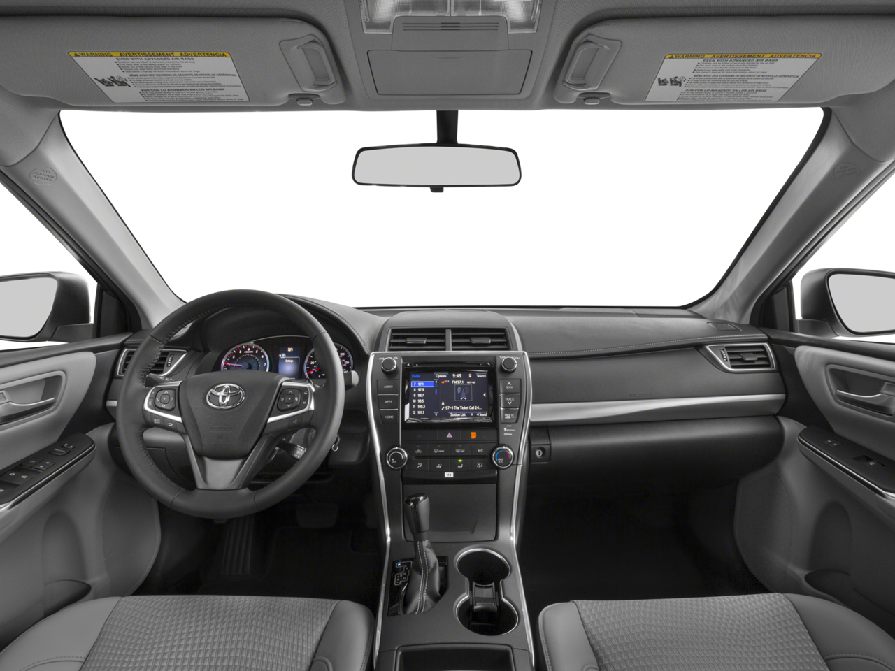 2017 Toyota Camry FWD 6-Speed Automatic 2.5L I4 SMPI DOHC 4-Wheel Disc Brakes, ABS brakes, Air Conditioning, Brake assist, Bumpers: body-color, CD player, Delay-off headlights, Driver door bin, Driver vanity mirror, Dual front impact airbags, Dual front side impact airbags, Electronic Stability Control, Exterior Parking Camera Rear, Four wheel independent suspension, Front anti-roll bar, Front Bucket Seats, Front Center Armrest, Front reading lights, Fully automatic headlights, Heated door mirrors, Illuminated entry, Knee airbag, Low tire pressure warning, Occupant sensing airbag, Outside temperature display, Overhead airbag, Overhead console, Panic alarm, Passenger door bin, Passenger vanity mirror, Power door mirrors, Power driver seat, Power steering, Power windows, Rear anti-roll bar, Rear seat center armrest, Rear side impact airbag, Rear window defroster, Remote keyless entry, Speed control, Speed-sensing steering, Split folding rear seat, Steering wheel mounted audio controls, Tachometer, Telescoping steering wheel, Tilt steering wheel, Traction control, Trip computer, Variably intermittent wipers.