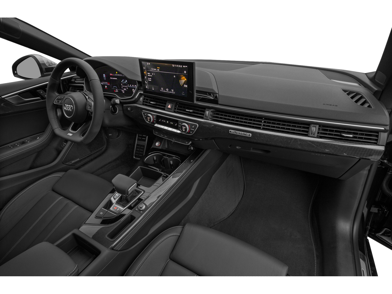 Clean CARFAX. 2022 Audi S5 Sportback Prestige quattro quattro 8-Speed Automatic with Tiptronic 3.0L TFSI 10 Speakers, 4-Wheel Disc Brakes, ABS brakes, Air Conditioning, Alloy wheels, AM/FM radio, Auto High-beam Headlights, Auto-dimming Rear-View mirror, Automatic temperature control, Brake assist, Bumpers: body-color, Compass, Delay-off headlights, Driver door bin, Driver vanity mirror, Dual front impact airbags, Dual front side impact airbags, Electronic Stability Control, Emergency communication system: Audi connect CARE, Exterior Parking Camera Rear, Four wheel independent suspension, Front anti-roll bar, Front Bucket Seats, Front Center Armrest, Front dual zone A/C, Front fog lights, Front reading lights, Garage door transmitter: HomeLink, Heated door mirrors, Heated Front S Sport Seats, Heated front seats, Illuminated entry, Knee airbag, Leather Shift Knob, Leather steering wheel, Leather/Dinamica Seating Surfaces, Low tire pressure warning, Occupant sensing airbag, Outside temperature display, Overhead airbag, Overhead console, Panic alarm, Passenger door bin, Passenger vanity mirror, Power door mirrors, Power driver seat, Power Liftgate, Power moonroof, Power passenger seat, Power steering, Power windows, Radio data system, Radio: Audi Sound System, Rain sensing wipers, Rear air conditioning, Rear anti-roll bar, Rear reading lights, Rear seat center armrest, Rear window defroster, Remote keyless entry, Speed control, Speed-sensing steering, Speed-Sensitive Wipers, Split folding rear seat, Spoiler, Steering wheel mounted audio controls, Tachometer, Telescoping steering wheel, Tilt steering wheel, Traction control, Trip computer, Turn signal indicator mirrors, Variably intermittent wipers, Wheels: 19 5-Double-Arm Design Bi-Color Finish.
