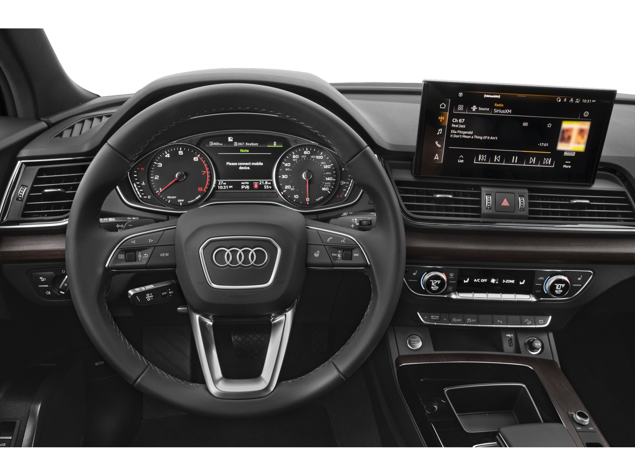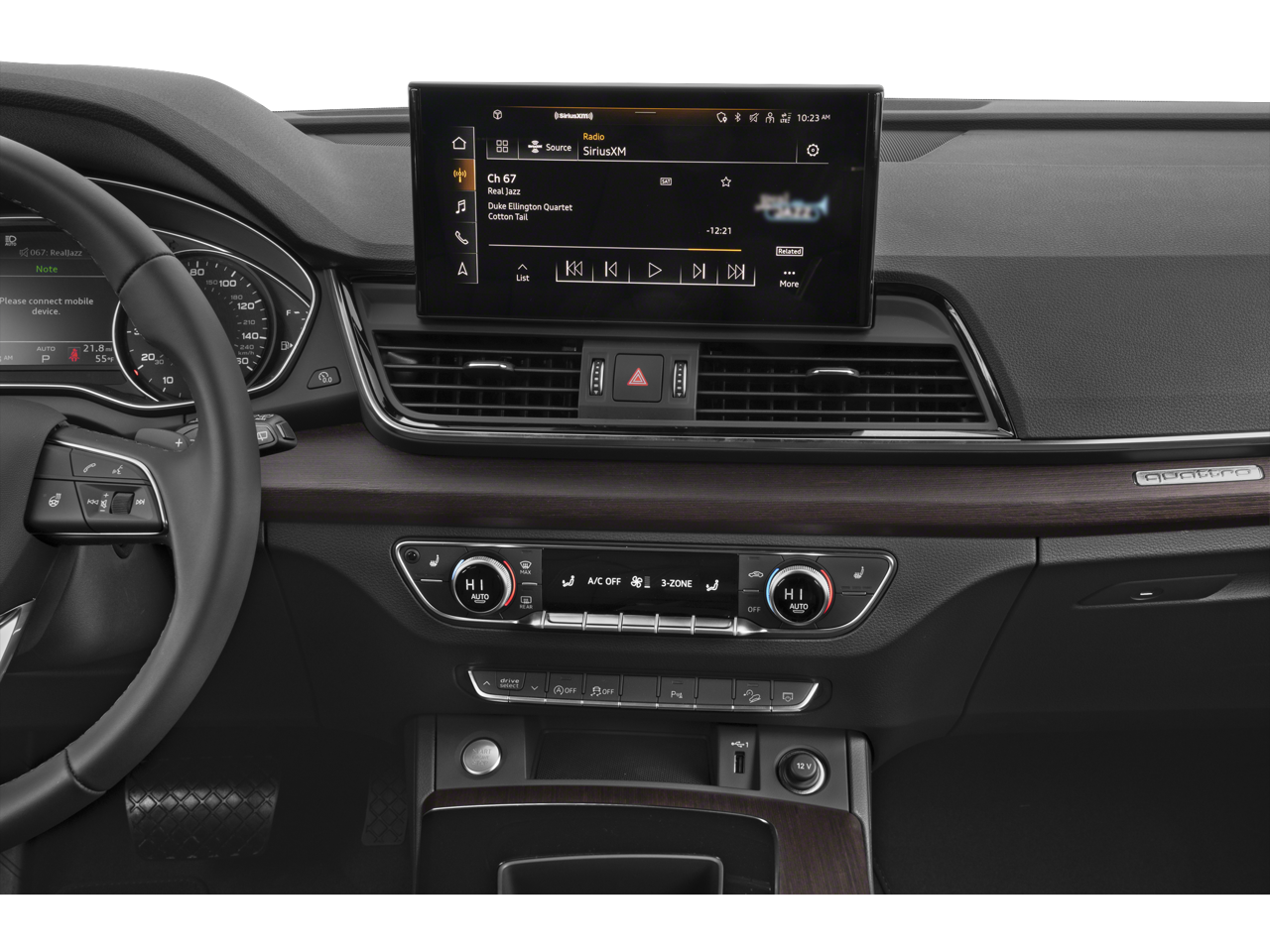 Clean CARFAX. Blue Metallic 2023 Audi Q5 45 S line Premium quattro quattro 7-Speed Automatic S tronic 2.0L Turbocharged Gray Leather, 10 Speakers, 4-Wheel Disc Brakes, 5.302 Axle Ratio, ABS brakes, Air Conditioning, All-Weather Floor Mats, Alloy wheels, AM/FM radio, Audi Active Lane Assist, Audi Advanced Key, Audi Beam-Rings, Audi Guard Protection Kit, Audi Virtual Cockpit Plus, Auto-Dimming Power Folding Exterior Mirrors, Auto-dimming Rear-View mirror, Automatic temperature control, Bang & Olufsen Sound System w/3D Sound, Black Exterior Trim, Black Optic Package, Black Roof Rails, Brake assist, Bumpers: body-color, Cargo Mat, Compass, Convenience Package, Delay-off headlights, Driver door bin, Driver Seat Memory, Driver vanity mirror, Dual front impact airbags, Dual front side impact airbags, Electric Powered Steering Column Delete (DISC), Electronic Stability Control, Emergency communication system: Audi connect CARE, Exterior Parking Camera Rear, Four wheel independent suspension, Front anti-roll bar, Front Bucket Seats, Front Center Armrest, Front dual zone A/C, Front fog lights, Front reading lights, Garage door transmitter: HomeLink, Genuine wood console insert, Genuine wood dashboard insert, Genuine wood door panel insert, Hands-On Detection Steering Wheel, Heated 8-Way Power Front Bucket Seats, Heated door mirrors, Heated front seats, Heated Steering Wheel, Illuminated entry, Illuminated Front Audi Rings, Leather Seating Surfaces, Leather Shift Knob, Leatherette Covered Center Console & Door Armrests, Low tire pressure warning, Occupant sensing airbag, Outside temperature display, Overhead airbag, Overhead console, Panic alarm, Panoramic Sunroof, Passenger door bin, Passenger vanity mirror, Power Adjustable Steering Column, Power door mirrors, Power driver seat, Power Liftgate, Power passenger seat, Power steering, Power windows, Premium Plus Package, Radio data system, Radio: Audi Sound System, Rain sensing wipers, Rear air conditioning, Rear anti-roll bar, Rear fog lights, Rear reading lights, Rear seat center armrest, Rear Side Thoracic Airbags, Rear window defroster, Rear window wiper, Remote keyless entry, Roof rack, Security system, SiriusXM w/360L, Speed control, Speed-sensing steering, Speed-Sensitive Wipers, Split folding rear seat, Spoiler, Steering wheel mounted audio controls, Tachometer, Telescoping steering wheel, Tilt steering wheel, Top View Camera System, Traction control, Traffic Jam Assist, Trip computer, Turn signal indicator mirrors, Variably intermittent wipers, Wheels: 18 5-Arm-Turbine Design, Wheels: 19 5-Double-Arm Design Bi-Color Finish, Wheels: 20 5-Arm Cutter Design, Bi-Color Finish, Gray Leather.