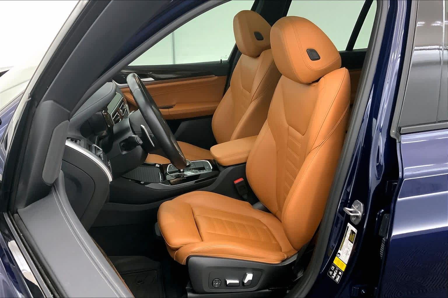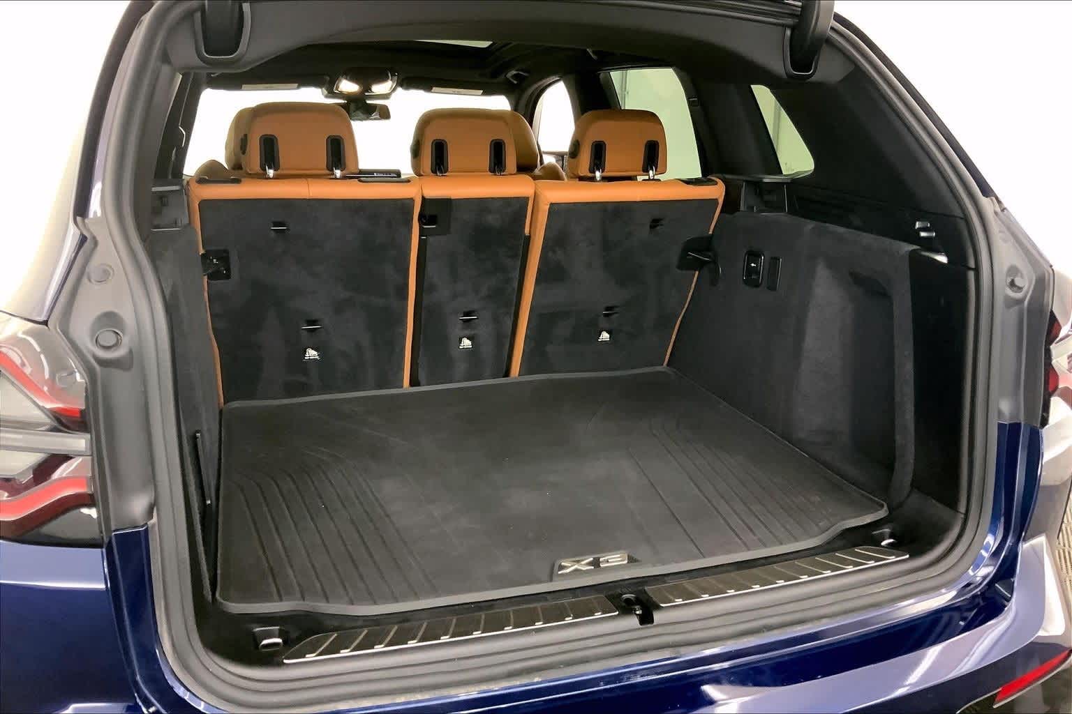 CARFAX One-Owner. Tanzanite Blue II Metallic 2023 BMW X3 M40i AWD 8-Speed Automatic Sport I6 8-Speed Automatic Sport, 12 Speakers, 3.385 Axle Ratio, 4-Wheel Disc Brakes, ABS brakes, Adaptive suspension, Air Conditioning, Alloy wheels, AM/FM Radio, AM/FM radio: SiriusXM, Apple CarPlay & Android Auto Compatibility, Auto High-beam Headlights, Auto-dimming door mirrors, Auto-dimming Rear-View mirror, Automatic temperature control, BMW Assist eCall, BMW TeleServices, Brake assist, Bumpers: body-color, Connected Package Pro, ConnectedDrive Services, Dark Oak Wood Trim, Delay-off headlights, Driver door bin, Driver Lumbar Support, Driver vanity mirror, Dual front impact airbags, Dual front side impact airbags, Electronic Stability Control, Emergency communication system: BMW Assist eCall, Enhanced USB & Bluetooth® w/Smartphone Integration, Exterior Parking Camera Rear, Four wheel independent suspension, Front anti-roll bar, Front Bucket Seats, Front Center Armrest, Front dual zone A/C, Front reading lights, Fully automatic headlights, Garage door transmitter, harman/kardon Surround Sound System, Head-Up Display, Heated door mirrors, Heated Front Seats, Heated Steering Wheel, Hi-Fi Sound System, Illuminated entry, Increased Top Speed Limiter, Knee airbag, Leather steering wheel, Live Cockpit Pro w/Navigation, Low tire pressure warning, Memory seat, Navigation System, Occupant sensing airbag, Outside temperature display, Overhead airbag, Overhead console, Panic alarm, Passenger door bin, Passenger vanity mirror, Perforated SensaTec Upholstery, Power door mirrors, Power driver seat, Power Front Seats, Power Liftgate, Power moonroof, Power passenger seat, Power steering, Power windows, Premium Package, Radio data system, Rain sensing wipers, Rear air conditioning, Rear anti-roll bar, Rear reading lights, Rear seat center armrest, Rear window defroster, Rear window wiper, Remote Engine Start, Remote keyless entry, Security system, SiriusXM Satellite Radio, Speed control, Speed-sensing steering, Speed-Sensitive Wipers, Split folding rear seat, Spoiler, Sport Seats, Sport steering wheel, Steering wheel mounted audio controls, Tachometer, Telescoping steering wheel, Tilt steering wheel, Traction control, Trip computer, Turn signal indicator mirrors, Variably intermittent wipers, Wheels: 19 x 7.5 M Y-Spoke Bi-Color (Style 887M), Wheels: 20 x 8.0 Fr & 20 x 9.5 Rr (Style 787M), WiFi Hotspot, Wireless Charging, 8-Speed Automatic Sport.