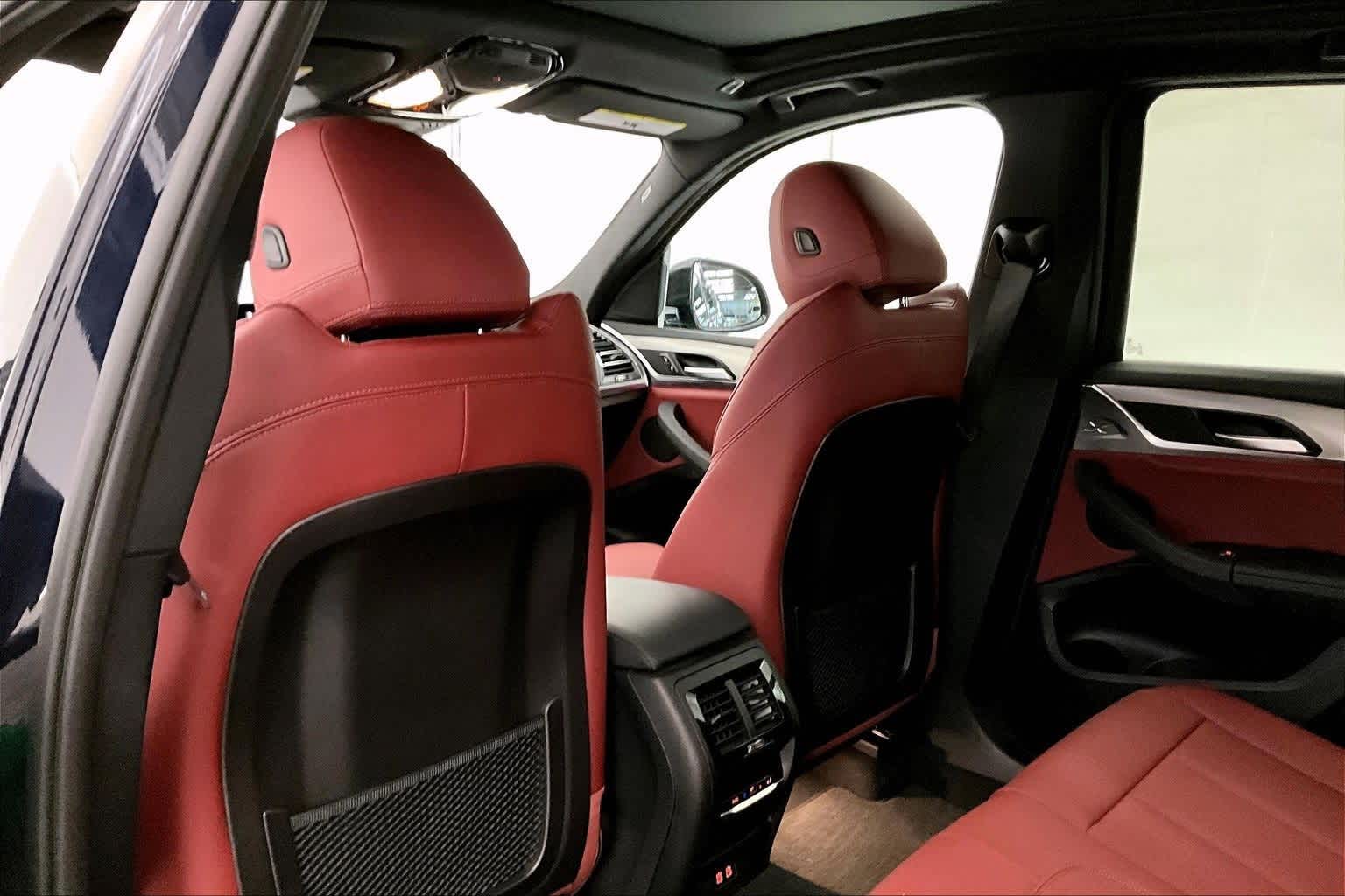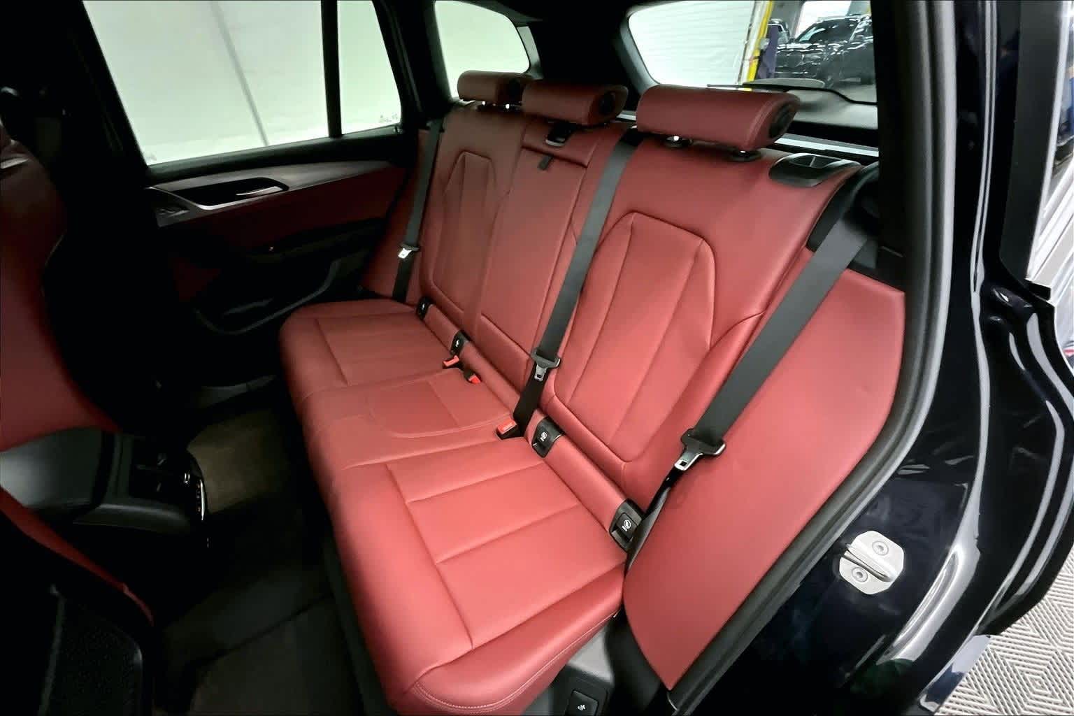 Clean CARFAX. Carbon Black Metallic 2023 BMW X3 xDrive30i AWD 8-Speed Automatic Sport 2.0L I4 TwinPower Turbo 8-Speed Automatic Sport, 12 Speakers, 3.385 Axle Ratio, 4-Wheel Disc Brakes, ABS brakes, Aerodynamic Kit, Air Conditioning, Alloy wheels, Aluminum Trim, AM/FM Radio, AM/FM radio: SiriusXM, Apple CarPlay & Android Auto Compatibility, Auto High-beam Headlights, Auto-dimming door mirrors, Auto-dimming Rear-View mirror, Automatic temperature control, BMW Assist eCall, BMW TeleServices, Brake assist, Bumpers: body-color, Comfort Access Keyless Entry, Connected Package Pro, ConnectedDrive Services, Delay-off headlights, Driver door bin, Driver Lumbar Support, Driver vanity mirror, Dual front impact airbags, Dual front side impact airbags, Electronic Stability Control, Emergency communication system: BMW Assist eCall, Enhanced USB & Bluetooth® w/Smartphone Integration, Exterior Parking Camera Rear, Four wheel independent suspension, Front anti-roll bar, Front Bucket Seats, Front Center Armrest, Front dual zone A/C, Front reading lights, Fully automatic headlights, Garage door transmitter, Genuine wood dashboard insert, Genuine wood door panel insert, Heated door mirrors, Heated Front Seats, Heated Steering Wheel, Hi-Fi Sound System, Illuminated entry, Knee airbag, Live Cockpit Pro w/Navigation, Low tire pressure warning, M Sport Package, M Sport Package (337), M Steering Wheel, Memory seat, Navigation, Navigation System, Occupant sensing airbag, Outside temperature display, Overhead airbag, Panic alarm, Panoramic Moonroof, Passenger door bin, Passenger vanity mirror, Perforated SensaTec Upholstery, Power door mirrors, Power driver seat, Power Front Seats, Power Liftgate, Power passenger seat, Power steering, Power windows, Premium Package, Radio data system, Rain sensing wipers, Rear air conditioning, Rear anti-roll bar, Rear reading lights, Rear seat center armrest, Rear window defroster, Rear window wiper, Remote keyless entry, Roof Rails in High-Gloss Shadowline, Security system, Shadowline Exterior Trim, SiriusXM Satellite Radio, Smoke Grey Aluminum Rhombicle Trim, Speed control, Speed-sensing steering, Speed-Sensitive Wipers, Split folding rear seat, Spoiler, Sport Seats, Sport steering wheel, Steering wheel mounted audio controls, Tachometer, Telescoping steering wheel, Tilt steering wheel, Traction control, Trip computer, Turn signal indicator mirrors, Variably intermittent wipers, Wheels: 19 x 7.5 M Y-Spoke Bi-Color (Style 887M), Wheels: 19 x 7.5 Y-Spoke (Style 693), WiFi Hotspot, Without Exterior Lines Designation, 8-Speed Automatic Sport.