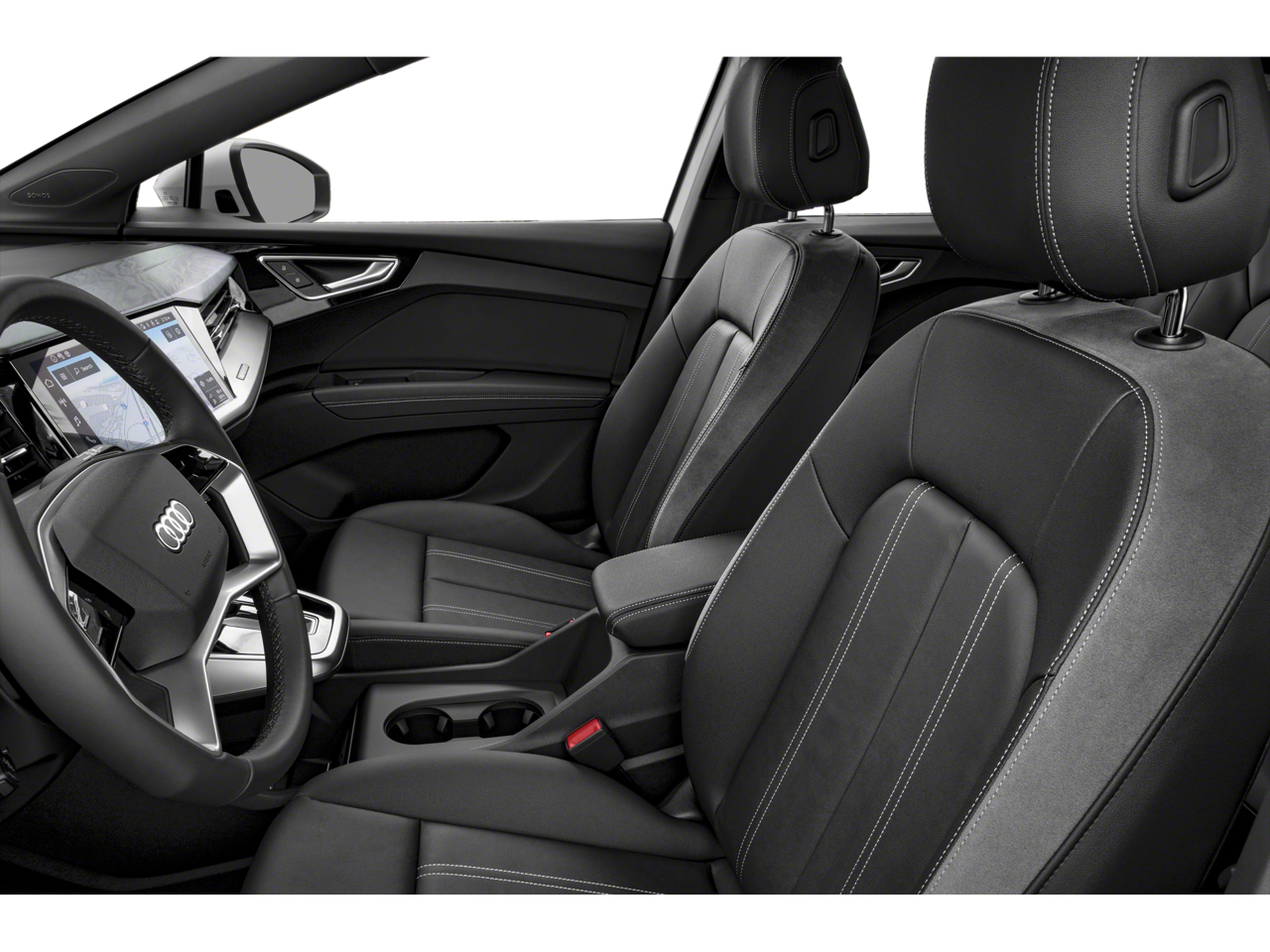 Clean CARFAX. Glacier White 2024 Audi Q4 e-tron Premium Plus quattro quattro Single-Speed Automatic Electric Motor 8 Speakers, ABS brakes, Air Conditioning, Alarm System w/Motion Sensor, Alloy wheels, Audi Advanced Key, Audi Beam-Rings, Audi Connect NAV & PLUS, Audi Guard Protection Kit, Audi MMI Navigation Plus, Audi Virtual Cockpit Plus, Auto High-beam Headlights, Auto-Dimming Power Folding Exterior Mirrors, Auto-Dimming Rear-View Mirror, Automatic temperature control, Black Exterior Elements, Black Optic Package, Black Roof Rails, Brake assist, Bumpers: body-color, Convenience Package, Delay-off headlights, Driver door bin, Driver vanity mirror, Dual front impact airbags, Dual front side impact airbags, Dual-Pane Acoustic Glass for Front Side Windows, Electronic Stability Control, Emergency communication system, Exterior Parking Camera Rear, Four wheel independent suspension, Front anti-roll bar, Front Bucket Seats, Front Center Armrest, Front dual zone A/C, Front reading lights, Fully automatic headlights, Garage Door Opener, Genuine wood dashboard insert, Hands-Free Power Tailgate, Heat Pump, Heated door mirrors, Heated Front Seats, Heated front seats, Heated Steering Wheel, Illuminated entry, Leather Seating Surfaces, Leather steering wheel, LED Interior Lighting Plus Package, Low tire pressure warning, Memory for Drivers Seat, Occupant sensing airbag, Outside temperature display, Overhead airbag, Overhead console, Panic alarm, Park Assist Plus, Passenger door bin, Passenger vanity mirror, Power door mirrors, Power driver seat, Power Front Passenger Seat, Power Liftgate, Power moonroof, Power steering, Power windows, Premium Plus, Projection Light in Exterior Mirrors, Radio data system, Radio: Audi Sound System, Rain sensing wipers, Rear air conditioning, Rear anti-roll bar, Rear reading lights, Rear seat center armrest, Rear window defroster, Rear window wiper, Remote keyless entry, Security system, SiriusXM w/360L, SONOS Premium Sound System, Speed control, Speed-sensing steering, Split folding rear seat, Spoiler, Steering wheel mounted audio controls, TBD Axle Ratio, Telescoping steering wheel, Tilt steering wheel, Traction control, Traffic Sign Recognition, Trip computer, Turn signal indicator mirrors, Variably intermittent wipers, Wheels: 19 5-Arm Design, Wheels: 20 5-Y-Spoke Design w/Bi-Color Finish, Wireless Phone Charging Pad.