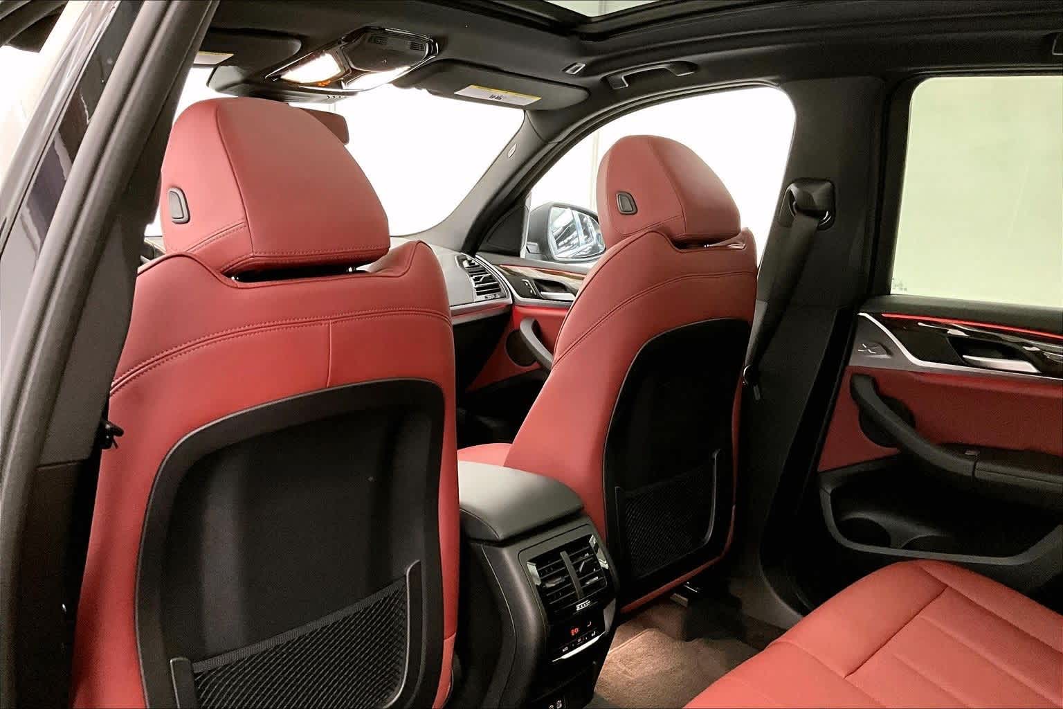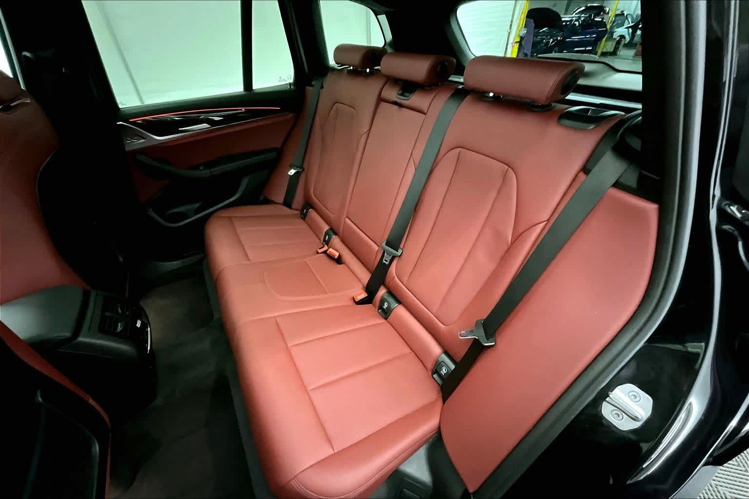 CARFAX One-Owner. Clean CARFAX. Black Sapphire Metallic 2024 BMW X3 xDrive30i AWD 8-Speed Automatic Sport I4 8-Speed Automatic Sport, 12 Speakers, 3.385 Axle Ratio, 4-Wheel Disc Brakes, ABS brakes, Air Conditioning, Alloy wheels, AM/FM Radio, AM/FM radio: SiriusXM, Apple CarPlay & Android Auto Compatibility, Auto High-beam Headlights, Auto-dimming door mirrors, Auto-dimming Rear-View mirror, Automatic temperature control, BMW Assist eCall, BMW TeleServices, Brake assist, Bumpers: body-color, Connected Package Pro, ConnectedDrive Services, Delay-off headlights, Driver door bin, Driver vanity mirror, Dual front impact airbags, Dual front side impact airbags, Electronic Stability Control, Emergency communication system: BMW Assist eCall, Enhanced USB & Bluetooth® w/Smartphone Integration, Exterior Parking Camera Rear, Four wheel independent suspension, Front anti-roll bar, Front Bucket Seats, Front Center Armrest, Front dual zone A/C, Front reading lights, Fully automatic headlights, Garage door transmitter, Genuine wood dashboard insert, Genuine wood door panel insert, Heated door mirrors, Heated Front Seats, Heated Steering Wheel, Hi-Fi Sound System, Illuminated entry, Knee airbag, Leather steering wheel, Low tire pressure warning, Memory seat, Navigation, Navigation System, Occupant sensing airbag, Outside temperature display, Overhead airbag, Panic alarm, Panoramic Moonroof (ZPA), Passenger door bin, Passenger vanity mirror, Perforated SensaTec Upholstery, Power door mirrors, Power driver seat, Power Front Seats, Power Liftgate, Power passenger seat, Power steering, Power windows, Radio data system, Rain sensing wipers, Rear air conditioning, Rear anti-roll bar, Rear reading lights, Rear seat center armrest, Rear window defroster, Rear window wiper, Remote Engine Start, Remote keyless entry, Security system, SiriusXM w/360L & 1 Yr Platinum Plan Subscription, Speed control, Speed-sensing steering, Speed-Sensitive Wipers, Split folding rear seat, Spoiler, Sport Seats, Sport steering wheel, Steering wheel mounted audio controls, Tachometer, Telescoping steering wheel, Tilt steering wheel, Traction control, Trip computer, Turn signal indicator mirrors, Variably intermittent wipers, Wheels: 19 x 7.5 Y-Spoke (Style 693), Wheels: 19 x 7.5 Y-Spoke Ferric Grey (Style 693), WiFi Hotspot, 8-Speed Automatic Sport.