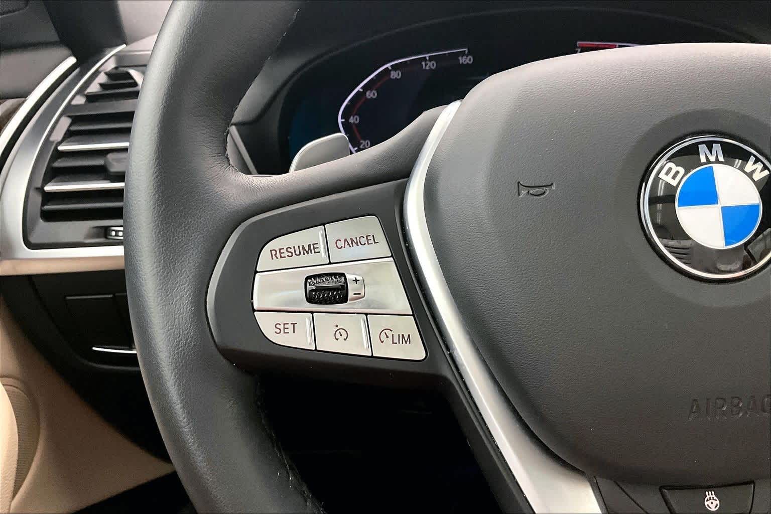 CARFAX One-Owner. Clean CARFAX. Mineral White Metallic 2024 BMW X3 xDrive30i AWD 8-Speed Automatic Sport I4 8-Speed Automatic Sport, 12 Speakers, 3.385 Axle Ratio, 4-Wheel Disc Brakes, ABS brakes, Active Park Distance Control, Air Conditioning, Alloy wheels, AM/FM Radio, AM/FM radio: SiriusXM, Apple CarPlay & Android Auto Compatibility, Auto High-beam Headlights, Auto-dimming door mirrors, Auto-dimming Rear-View mirror, Automatic temperature control, BMW Assist eCall, BMW TeleServices, Brake assist, Bumpers: body-color, Connected Package Pro, ConnectedDrive Services, Convenience Package, Delay-off headlights, Driver door bin, Driver vanity mirror, Dual front impact airbags, Dual front side impact airbags, Electronic Stability Control, Emergency communication system: BMW Assist eCall, Enhanced USB & Bluetooth® w/Smartphone Integration, Exterior Parking Camera Rear, Four wheel independent suspension, Front anti-roll bar, Front Bucket Seats, Front Center Armrest, Front dual zone A/C, Front reading lights, Fully automatic headlights, Garage door transmitter, Genuine wood dashboard insert, Genuine wood door panel insert, Heated door mirrors, Heated Front Seats, Heated Steering Wheel, Hi-Fi Sound System, Illuminated entry, Knee airbag, Leather steering wheel, Low tire pressure warning, Lumbar Support, Memory seat, Navigation, Navigation System, Occupant sensing airbag, Outside temperature display, Overhead airbag, Panic alarm, Panoramic Moonroof, Parking Assistance Package, Parking Assistant Plus, Passenger door bin, Passenger vanity mirror, Perforated SensaTec Upholstery, Power door mirrors, Power driver seat, Power Front Seats, Power Liftgate, Power passenger seat, Power steering, Power windows, Radio data system, Rain sensing wipers, Rear air conditioning, Rear anti-roll bar, Rear reading lights, Rear seat center armrest, Rear window defroster, Rear window wiper, Rear-View Camera, Remote Engine Start, Remote keyless entry, Security system, SiriusXM w/360L & 1 Yr Platinum Plan Subscription, Speed control, Speed-sensing steering, Speed-Sensitive Wipers, Split folding rear seat, Spoiler, Sport Seats, Sport steering wheel, Steering wheel mounted audio controls, Surround View w/3D View, Tachometer, Telescoping steering wheel, Tilt steering wheel, Traction control, Trip computer, Turn signal indicator mirrors, Variably intermittent wipers, Wheels: 19 x 7.5 Y-Spoke (Style 693), WiFi Hotspot, 8-Speed Automatic Sport.