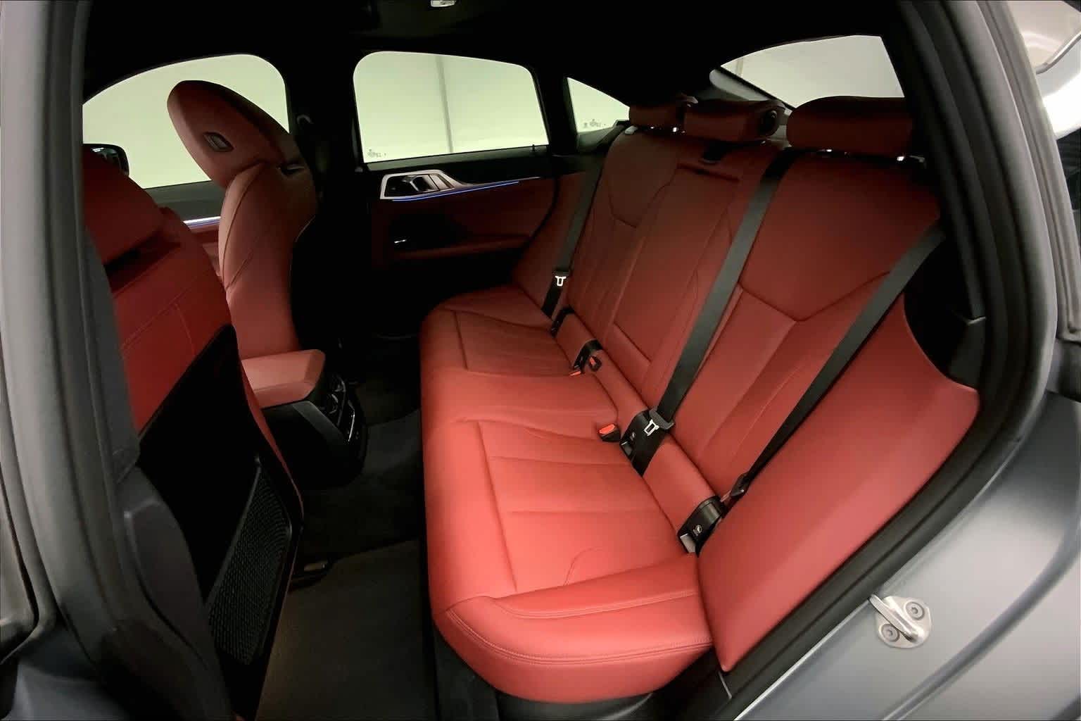 Clean CARFAX. Frozen Pure Gray II Metallic 2024 BMW i4 xDrive40 AWD Single-Speed Automatic Electric Motor 10 Speakers, 4-Wheel Disc Brakes, ABS brakes, Active Driving Assistant Pro, Active Park Distance Control, Adaptive suspension, Aerodynamic Kit, Air Conditioning, Alloy wheels, Apple CarPlay & Android Auto Compatibility, Auto High-beam Headlights, Auto-dimming door mirrors, Auto-dimming Rear-View mirror, Auto-leveling suspension, Automatic temperature control, Black Mirror Caps, BMW Assist eCall, BMW Curved Display w/HUD, BMW TeleServices, Brake assist, Bumpers: body-color, Compass, Connected Package Pro, ConnectedDrive Services, Delay-off headlights, Driver door bin, Driver vanity mirror, Driving Assistance Professional Package, Dual front impact airbags, Dual front side impact airbags, Electronic Stability Control, Emergency communication system: BMW Assist eCall, Extended Shadowline Trim, Extended Traffic Jam Assistant, Exterior Parking Camera Rear, Four wheel independent suspension, Front anti-roll bar, Front Bucket Seats, Front Center Armrest, Front dual zone A/C, Front reading lights, Fully automatic headlights, Garage door transmitter, harman/kardon Surround Sound System, Heated door mirrors, Heated Front Seats, Heated Steering Wheel, Hi-Fi Sound System, Iconic Sounds Electric, Illuminated entry, Leather steering wheel, Low tire pressure warning, Lumbar Support, M Shadowline Lights, M Sport Brakes w/Red Calipers, M Sport Package, M Sport Package (337), M Sport Package Pro, M Steering Wheel, Memory seat, Navigation, Navigation system: BMW Maps Navigation, Occupant sensing airbag, Outside temperature display, Overhead airbag, Overhead console, Panic alarm, Parking Assistance Package, Parking Assistant Plus, Passenger door bin, Passenger vanity mirror, Perforated Sensatec Upholstery, Power door mirrors, Power driver seat, Power Front Seats, Power Liftgate, Power moonroof, Power passenger seat, Power steering, Power windows, Premium Package, Radio data system, Radio: FM Audio System, Rain sensing wipers, Rear air conditioning, Rear anti-roll bar, Rear reading lights, Rear seat center armrest, Rear Spoiler, Rear window defroster, Rear-View Camera, Remote keyless entry, Security system, Shadowline Exterior Trim, Shadowline Package, SiriusXM w/360L & 1 Yr Platinum Plan Subscription, Speed control, Speed-sensing steering, Speed-Sensitive Wipers, Split folding rear seat, Sport Seats, Sport steering wheel, Steering wheel mounted audio controls, Surround View w/3D View, Telescoping steering wheel, Tilt steering wheel, Traction control, Trip computer, Turn signal indicator mirrors, Variably intermittent wipers, Wheels: 18 x 7.5 Gunmetal Grey Aero, Wheels: 19 x 8.5 Fr & 19 x 9.0 Rr M Y-Spoke, Widescreen Display, Wireless Device Charging, Without Lines Designation Outside.