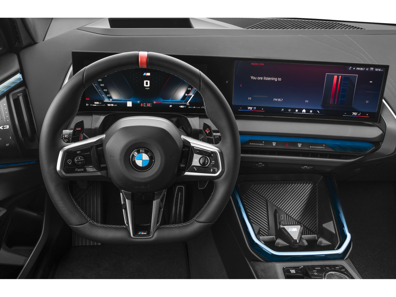 Clean CARFAX. Arctic Race Blue Metallic 2025 BMW X3 M50 xDrive AWD 8-Speed Automatic I6 8-Speed Automatic, 12 Speakers, 4-Wheel Disc Brakes, ABS brakes, Adaptive suspension, Air Conditioning, Alloy wheels, AM/FM Radio, AM/FM radio: SiriusXM, Apple CarPlay and Android Auto Compatibility, Auto High-beam Headlights, Auto-dimming door mirrors, Auto-dimming Rear-View mirror, Automatic temperature control, BMW Assist ECall, BMW TeleServices, Brake assist, Bumpers: body-color, Delay-off headlights, Driver door bin, Driver vanity mirror, Dual front impact airbags, Dual front side impact airbags, Electronic Stability Control, Emergency communication system: BMW Assist eCall, Extended Shadowline Trim, Exterior Parking Camera Rear, Four wheel independent suspension, Front anti-roll bar, Front Bucket Seats, Front Center Armrest, Front dual zone A/C, Front reading lights, Full LED Lights with Cornering Lights, Fully automatic headlights, Garage door transmitter, Harman/Kardon Surround Sound System, Heated door mirrors, Heated Front Seats, Heated front seats, Heated steering wheel, Hi-Fi Sound System, Illuminated entry, Knee airbag, Leather steering wheel, Low tire pressure warning, Lumbar Support, M Shadowline Lights, M Sport Brakes with Red Calipers, M Sport Package Pro, M Sport Professional Package, Memory seat, Navigation, Navigation system: BMW Maps Navigation, Occupant sensing airbag, Outside temperature display, Overhead airbag, Overhead console, Panic alarm, Passenger door bin, Passenger vanity mirror, Personal ESIM 5G, Power door mirrors, Power driver seat, Power Front Seats, Power Liftgate, Power passenger seat, Power steering, Power windows, Radio data system, Rain sensing wipers, Rear anti-roll bar, Rear Climate Control Console, Rear reading lights, Rear seat center armrest, Rear window defroster, Rear window wiper, Remote keyless entry, Security system, SiriusXM Satellite Radio with 1 Year Subscription, Speed control, Speed-sensing steering, Speed-Sensitive Wipers, Split folding rear seat, Spoiler, Sport Seats, Sport steering wheel, Steering wheel mounted audio controls, Tachometer, Telescoping steering wheel, Tilt steering wheel, Traction control, Trip computer, Turn signal indicator mirrors, Variably intermittent wipers, Veganza Perforated and Quilted Upholstery, Wheels: 21 x 9 Front and 21 x 10.5 Rear Bicolor, Wireless Device Charging, 8-Speed Automatic.