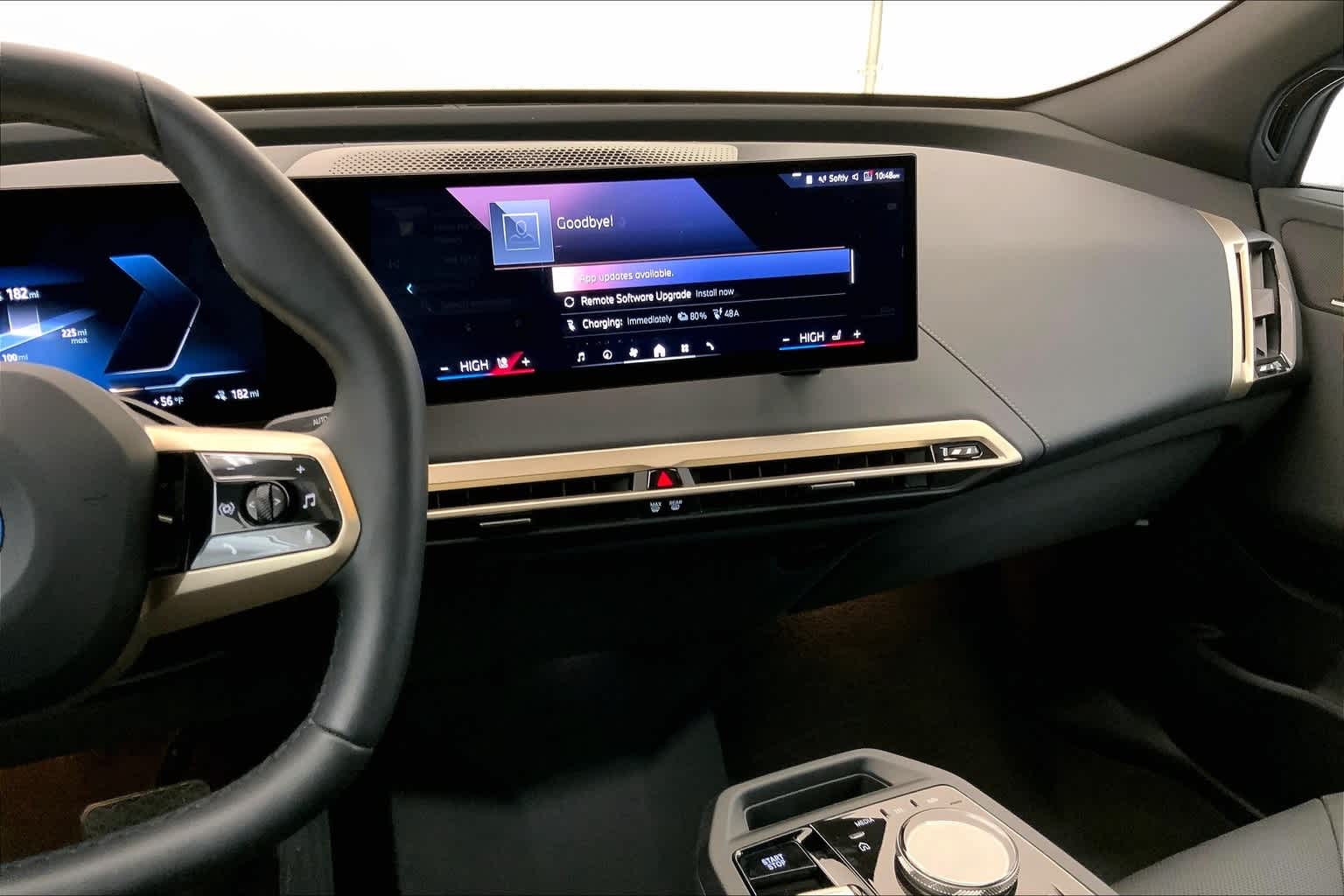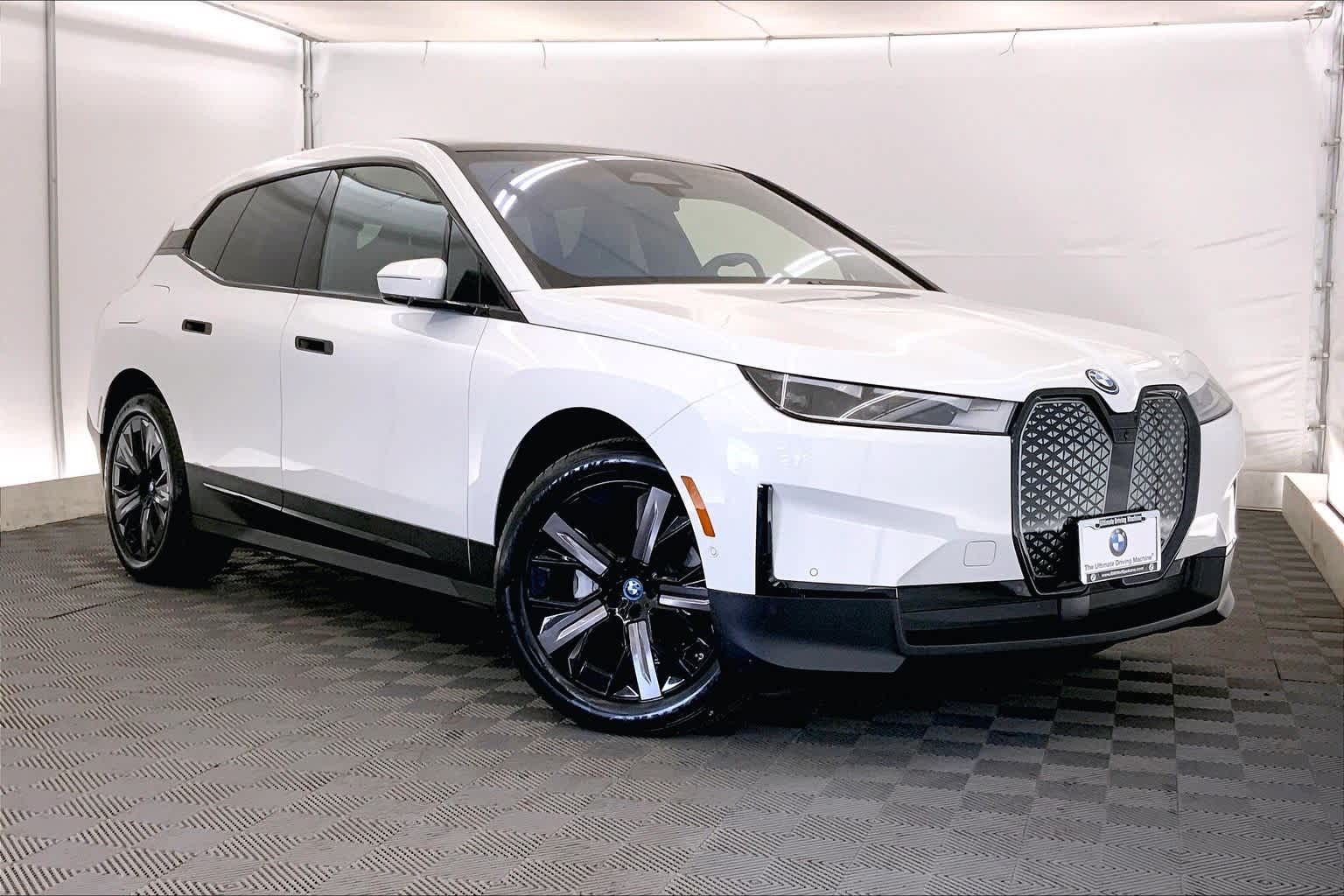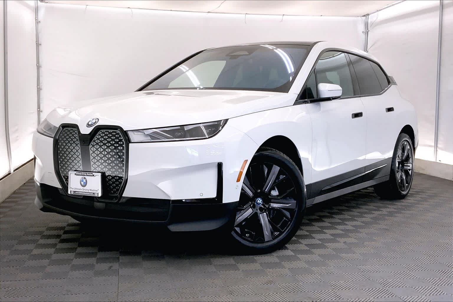 CARFAX One-Owner. Clean CARFAX. Alpine White 2025 BMW iX xDrive50 AWD Single-Speed Automatic Electric Motor 12 Speakers, 4-Wheel Disc Brakes, 8.77 Axle Ratio, ABS brakes, Air Conditioning, Alloy wheels, AM/FM Stereo, Apple CarPlay Compatibility, Auto High-beam Headlights, Auto tilt-away steering wheel, Auto-dimming door mirrors, Auto-dimming Rear-View mirror, Automatic temperature control, BMW TeleServices, Brake assist, Bucket Seats, Bumpers: body-color, Compass, Connected Package Pro, ConnectedDrive Services, Convenience Package, Delay-off headlights, Driver door bin, Driver vanity mirror, Dual front impact airbags, Dual front side impact airbags, Electronic Stability Control, Emergency communication system: BMW Assist eCall, Exterior Parking Camera Rear, Four wheel independent suspension, Front anti-roll bar, Front Bucket Seats, Front Center Armrest, Front dual zone A/C, Front reading lights, Fully automatic headlights, Garage door transmitter, Heated door mirrors, Heated Front Seats, Heated front seats, Heated steering wheel, Hi-Fi Sound System, Iconic Sounds Electric, Illuminated entry, Leather steering wheel, Live Cockpit Pro, Low tire pressure warning, Memory seat, Natural Interaction, Navigation, Navigation System, Occupant sensing airbag, Outside temperature display, Overhead airbag, Panic alarm, Parking Assistant Plus, Passenger door bin, Passenger vanity mirror, Perforated SensaTec Upholstery, Power door mirrors, Power driver seat, Power Liftgate, Power passenger seat, Power steering, Power windows, Radio data system, Rain sensing wipers, Rear air conditioning, Rear anti-roll bar, Rear dual zone A/C, Rear reading lights, Rear seat center armrest, Rear window defroster, Rear window wiper, Remote keyless entry, Security system, Speed control, Speed-sensing steering, Speed-Sensitive Wipers, Split folding rear seat, Spoiler, Steering wheel memory, Steering wheel mounted audio controls, Telescoping steering wheel, Tilt steering wheel, Traction control, Trip computer, Turn signal indicator mirrors, Variably intermittent wipers, Wheels: 21 x 9 Aero Dark Black, Wireless Device Charging.